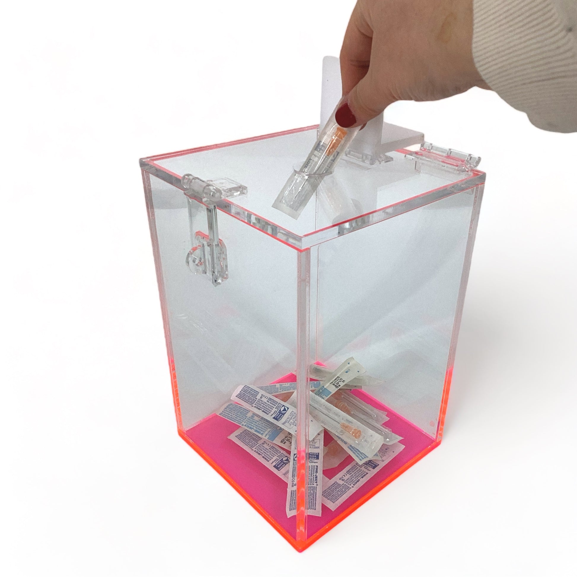Acrylic Medical/Lab Disposal Box - For Needles, Pipette Tips, Vials and More