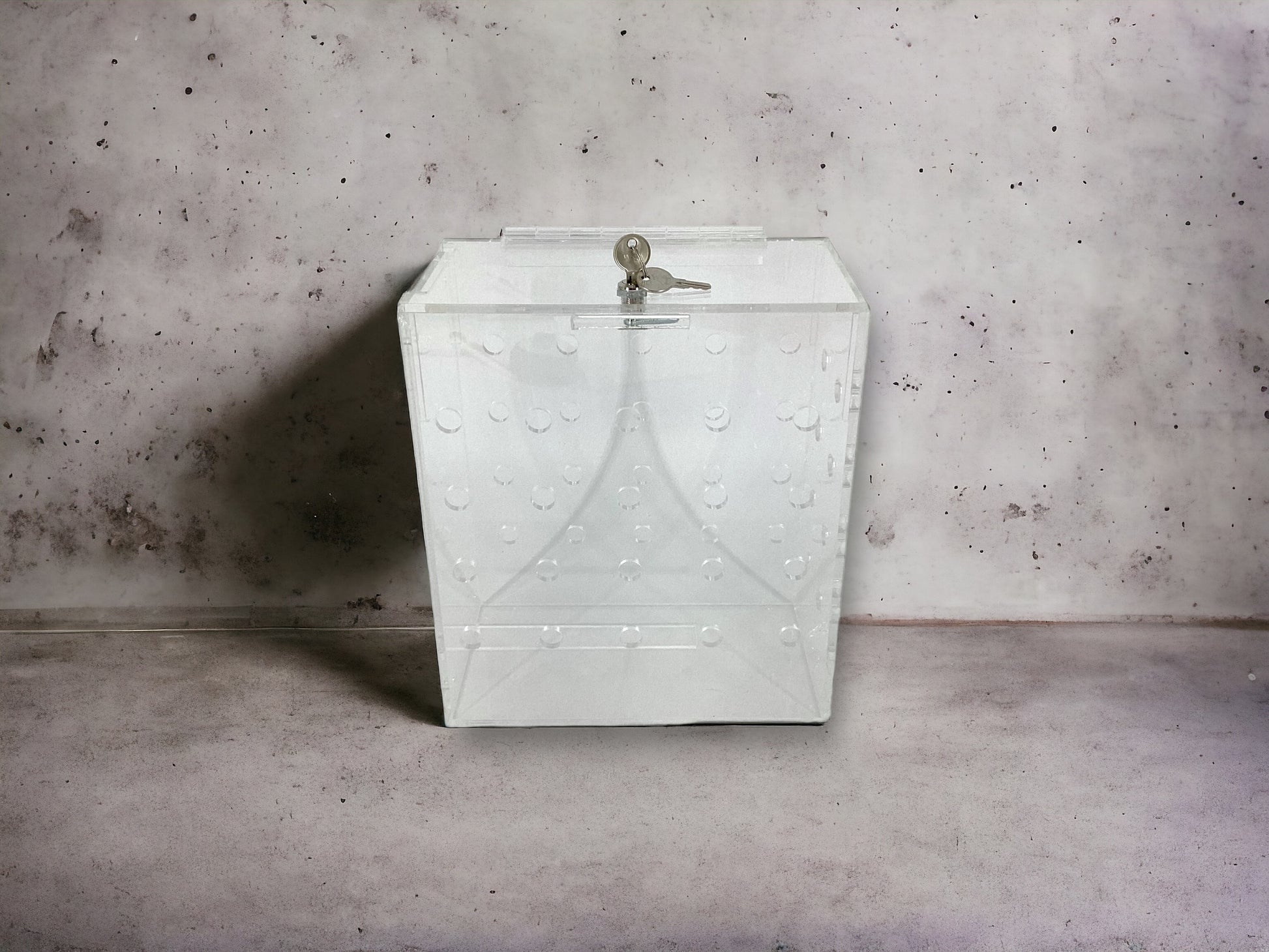 Made from clear thick acrylic. This acrylic case is available for connecting the system’s power supply, a/v cables through passing designed ventilation holes. Helps protects against dust and damage and it enhances the look of the item within. Lockable cam-lock with keys. Slot for disk withdrawal is cut out and gives you the option to put an acrylic blocker to cover the opening. This is great for libraries, school or personal use. Light security or theft deterrent. Suggested mounting options: Double-sided VHB tape or screws. Gaming console, screws, double-sided VHB tape not included.