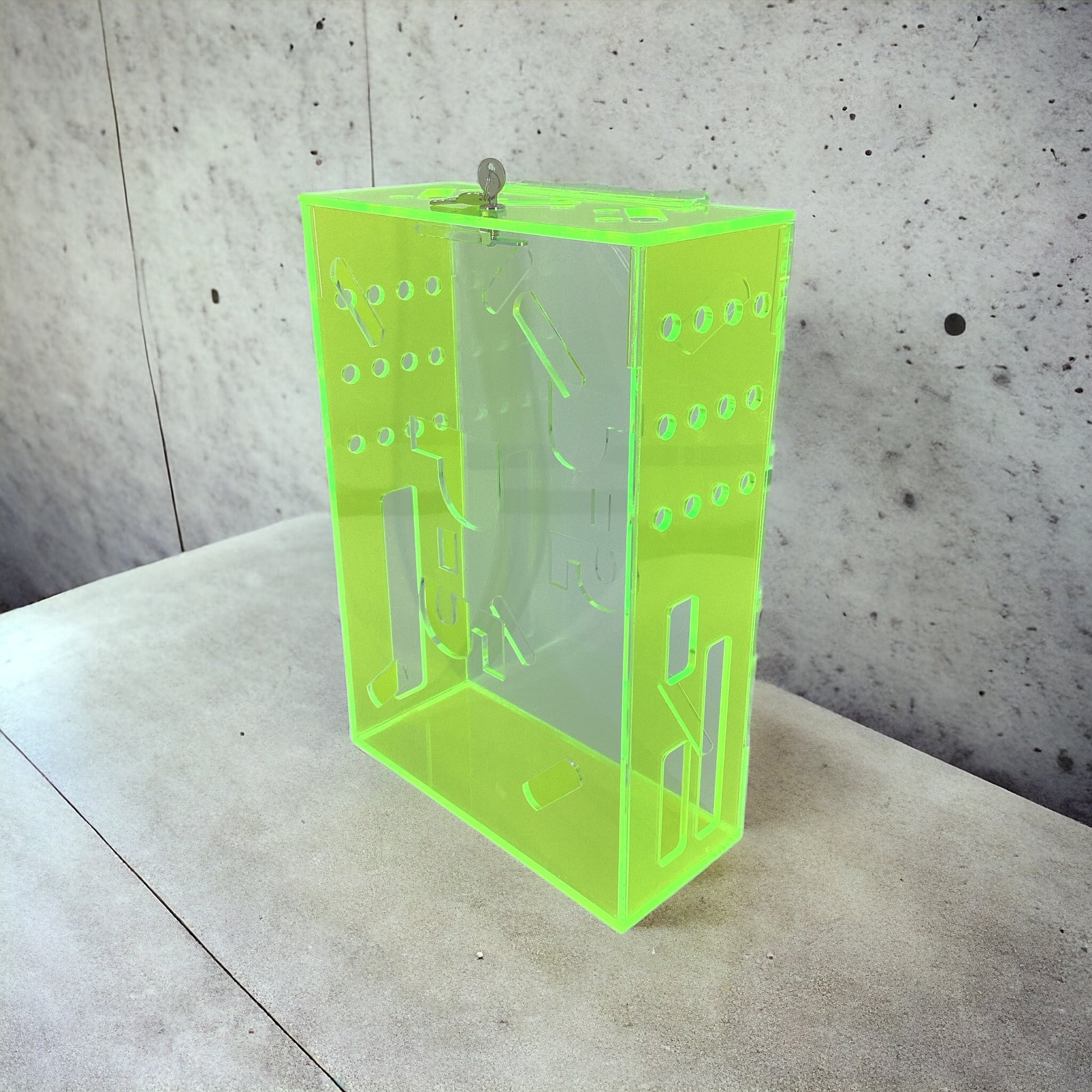 Secure your brand new PlayStation 5 (PS5) with this limited edition fluorescent green and clear acrylic console security case!