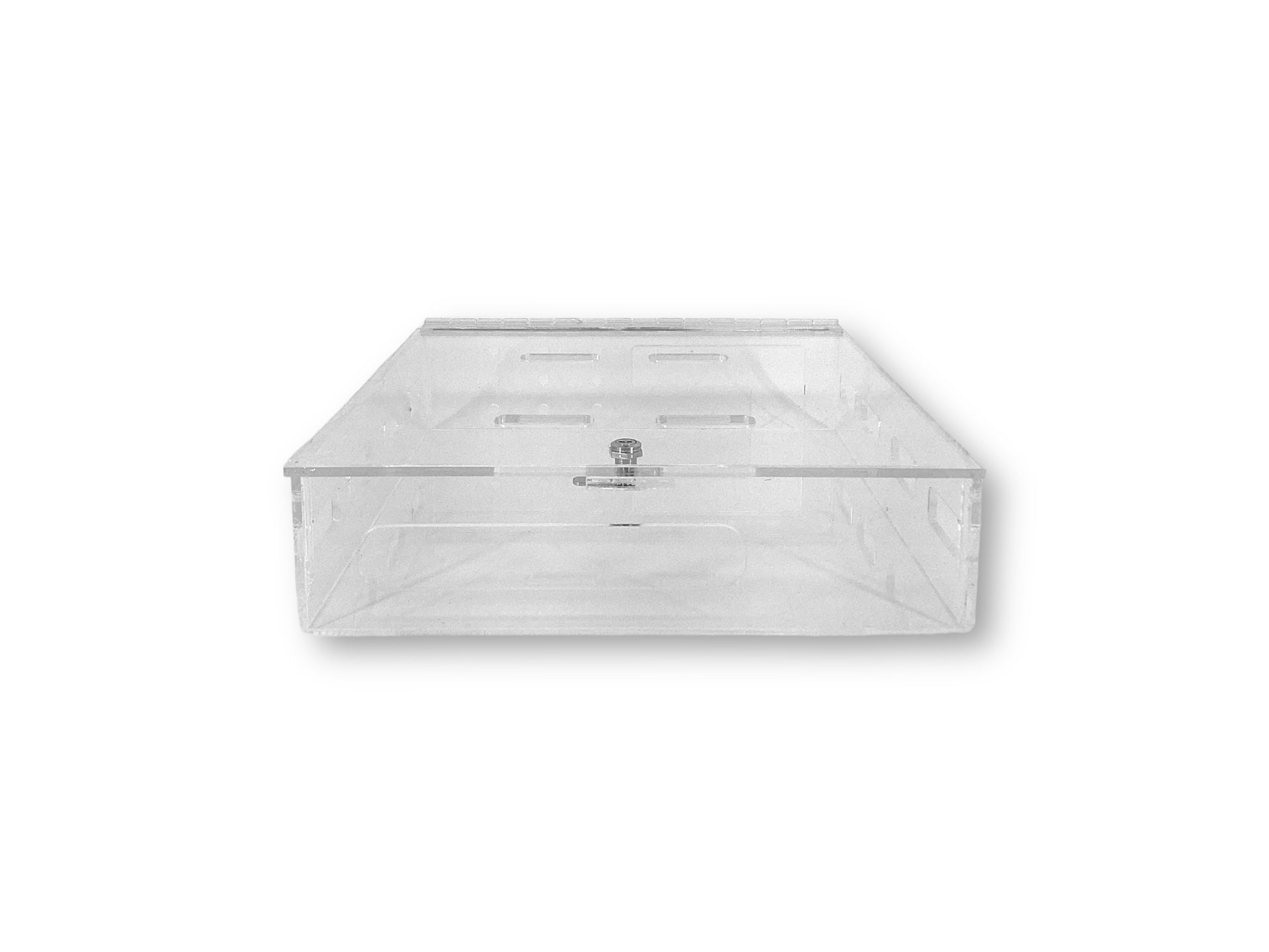 Helps protects against dust and damage and it enhances the look of the item within. Slot for disk withdrawal is cut out and gives you the option to put an acrylic blocker to cover the opening.