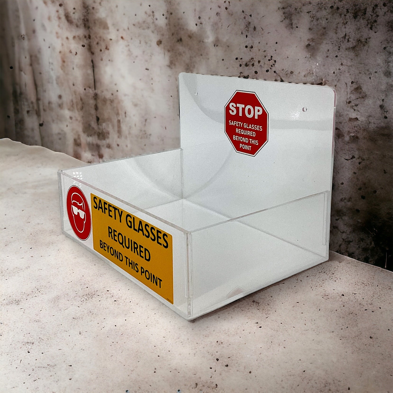 Perfect for the workplace, this wall mountable clear acrylic dispenser makes it easy for employees to access safety materials.